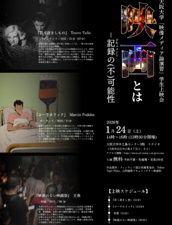 大阪大学中之島芸術センターでは、上映+トークイベント「小田香/ 崟利子 それぞれのエッセイ映画」を開催いたします。貴重な機会となりますので、ご興味のある方はどうぞご参加く …