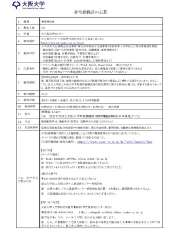 大阪大学中之島芸術センターでは、日本芸術文化振興会助成事業「舞台芸術等総合支援事業(芸術家等人材育成)」に係る事務補助業務を行う事務補佐員を募集します。